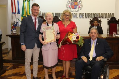 A médica Helena Maria Pavlick Bastos foi homenageada por indicação do vereador Carlos Delgado. Atuou mais de 30 anos como pediatra no Centro de Saúde de Uruguaiana, coordenando e participando de inúmeros projetos voltados a saúde infantil e da família.