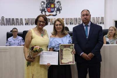 Maria Mercedez Nebenzahl Urquiza foi indicada pela vereadora Lilian Cuty em reconhecimento aos relevantes serviços prestados às causas sociais e à sua atuação no fortalecimento do comércio local. Durante a homenagem, foi destacado que seu trabalho na representação dos interesses lojistas e no apoio aos empreendedores contribui de forma positiva para o desenvolvimento da comunidade uruguaianense.