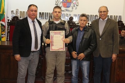 A solenidade foi presidida pelo vereador Fernando Tarragó (PSD), e contou com a presença do secretário Municipal de Segurança, Trânsito e Mobilidade Urbana, Irani Fernandes; representante da Brigada Militar, Major Gerson Correa de Melo e do 10º Batalhão de Bombeiro Militar, Cap. Gerson da Silva Rodrigues; e vereadores Mano Gás (PSDB), Vilson Brites (PMDB), Zulma Ancinello (PRB), Elton da Rocha (PP) e Suzana Alves (PRB). Foram homenageados: